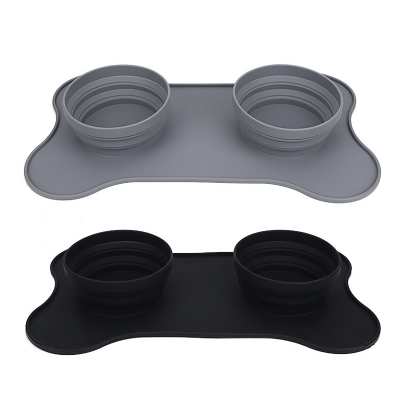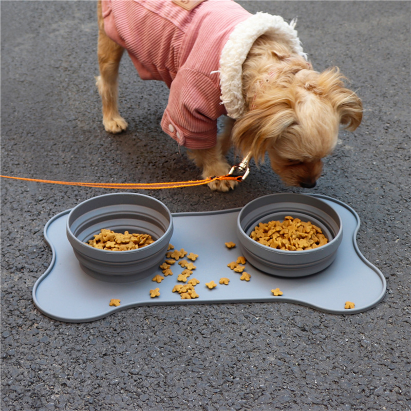 This is a foldable pet bowl mat. It is made of silicone. Dining mat and folding bowl in one. After folding, it does not take up space. Suitable for both home and outdoor use. Can customize your logo and pattern.