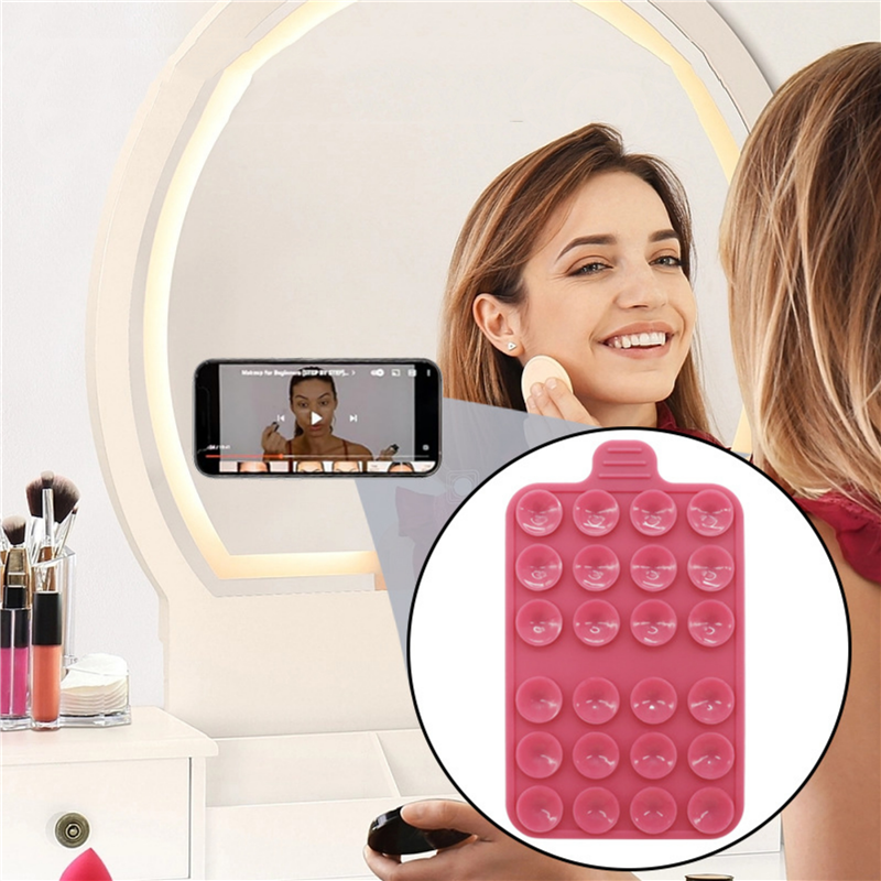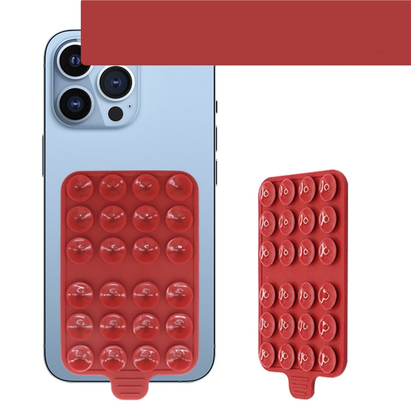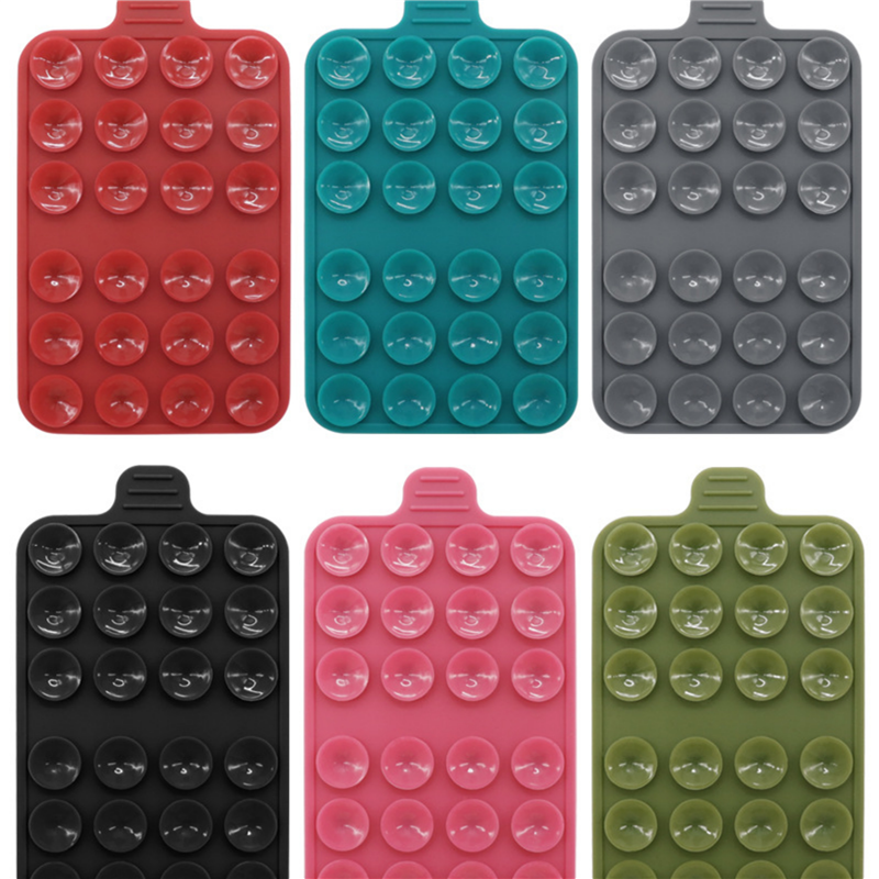 The material of this phone holder is silicone. Double sided use, super strong adsorption, can adsorb on tiles, glass, and walls. Convenient to carry. Can customize your logo and pattern