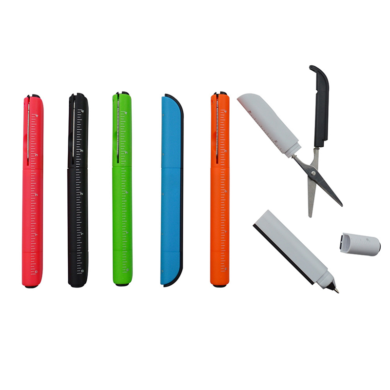Sharp ideas start with a sharp brand! The 4 in 1 Multi Tool is perfect for all writing and stationary needs. This creative multifunctional tool comes equipped with folding scissors for cutting paper or opening packages, a knife for small tasks such as sharpening pencils or cutting labels, a ruler for measuring and drawing straight lines, and a ballpoint pen to ensure a reliable writing instrument at all times. Its compact size makes it easy to store and use your brand when needed.
