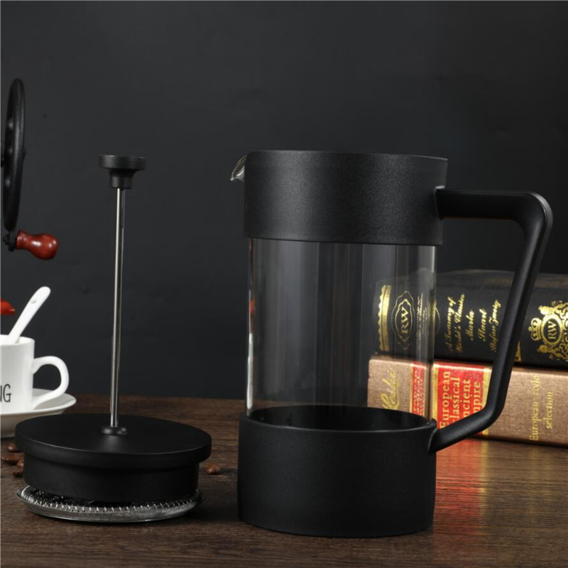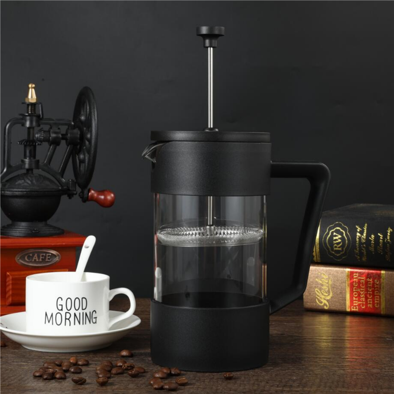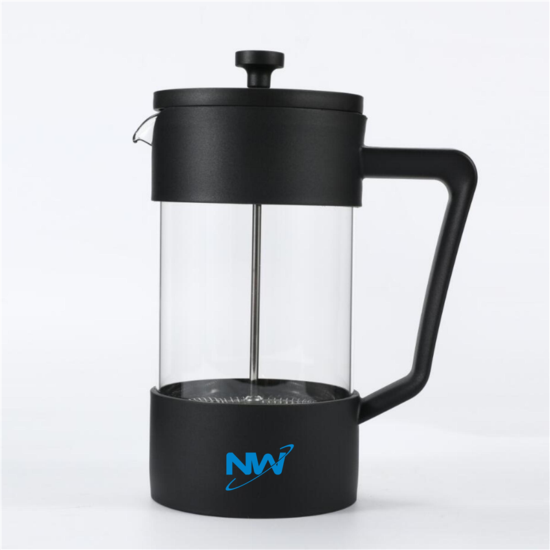 The material of this coffee pot is stainless steel and glass. There is a filter inside the pot. Fine filtration. Suitable for brewing coffee powder or tea. Can customize your logo and pattern.