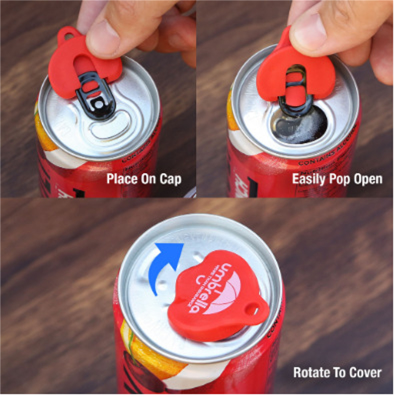 Save your fingernails and keep your drink safe with the opener! This handy gadget creates a lid for any can. Once clipped on the tab of your can, it can be opened and closed to keep those unwanted things from getting into your drink and reduces spills. It also helps to retain the carbonation, keeps the temperature cold, and has a small hole to attach to your keys.