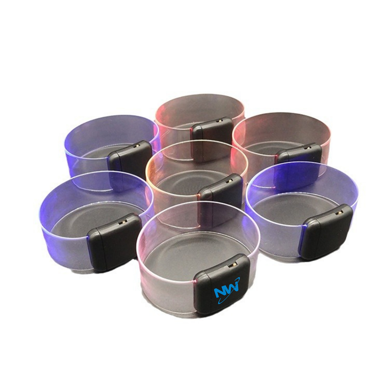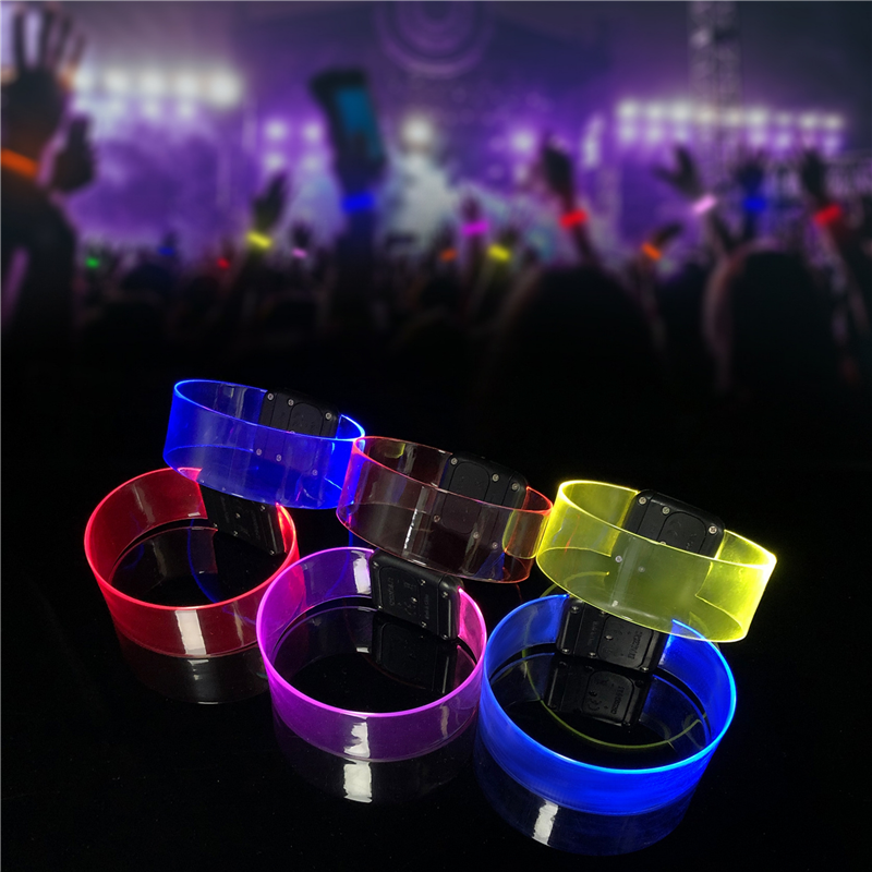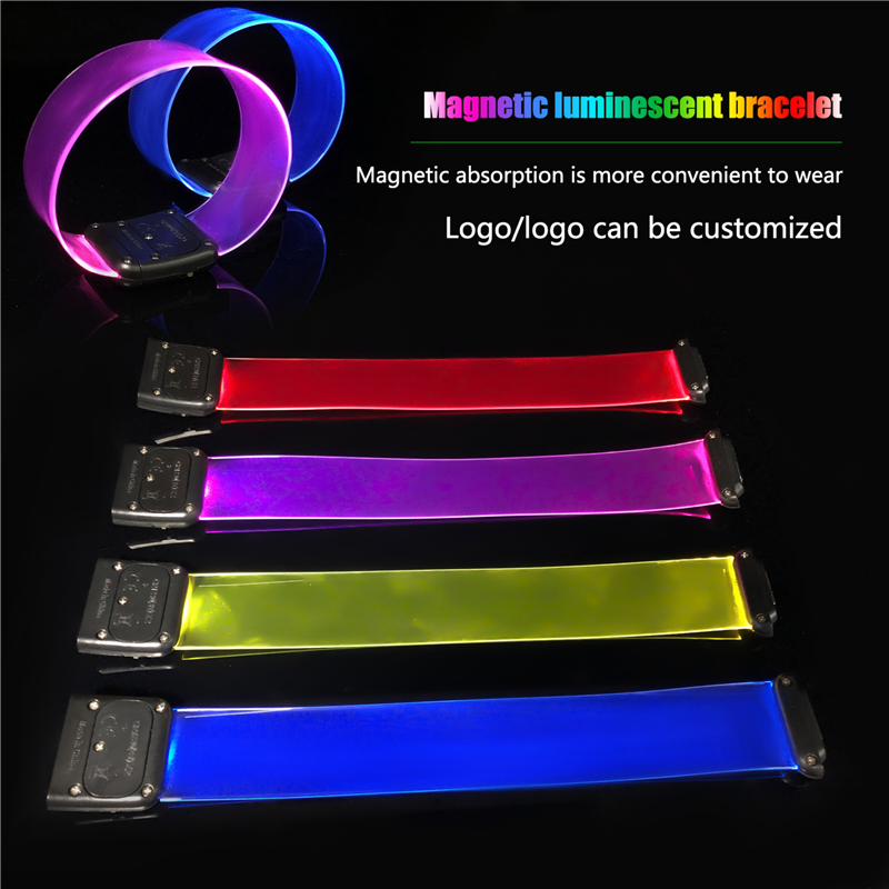 The material of this luminous bracelet is plastic+PVC. There are multiple lighting options for you to choose from. Very suitable for outdoor activities such as dances and parties. Can customize your logo and pattern.
