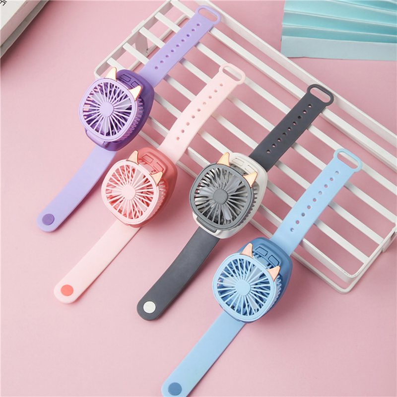 3-speed adjustable watch fan. Featuring three different wind speeds, the fan comes with an adjustable strap, making it easy to adapt to different wrist sizes. Very suitable for most people, the small dial does not take up space and is convenient to carry in a pocket or bag. Can customize your logo and pattern.