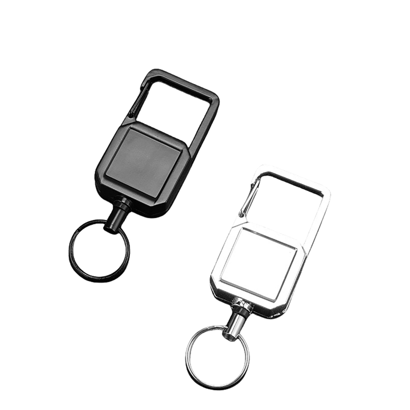 The Retractable Keychain is the ultimate solution for keeping your keys and IDs securely within reach. It offer ample flexibility while ensuring attachments stay close at hand. Equipped with a sturdy carabiner clip and split key ring, it provides both convenience and peace of mind. Crafted from durable zinc alloy, this keychain is built to withstand the rigors of daily use.