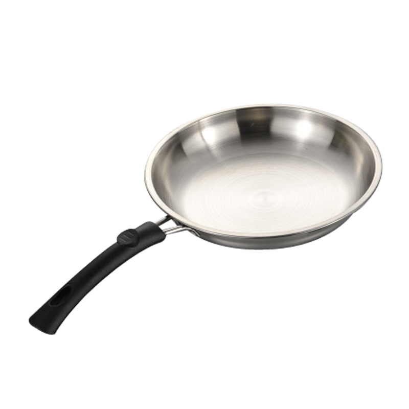 This pan is made of stainless steel and its diamater is 8.66 inches, which is perfect size for any kitchen occasion. It has fast heat up time and can retain heat even after being removed from stove. Most important, it will never rust.