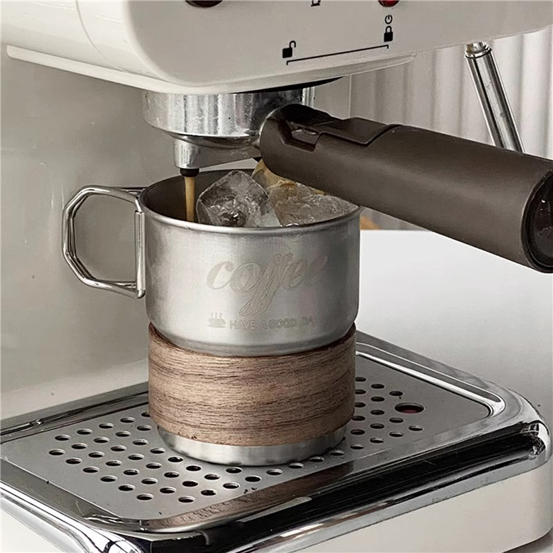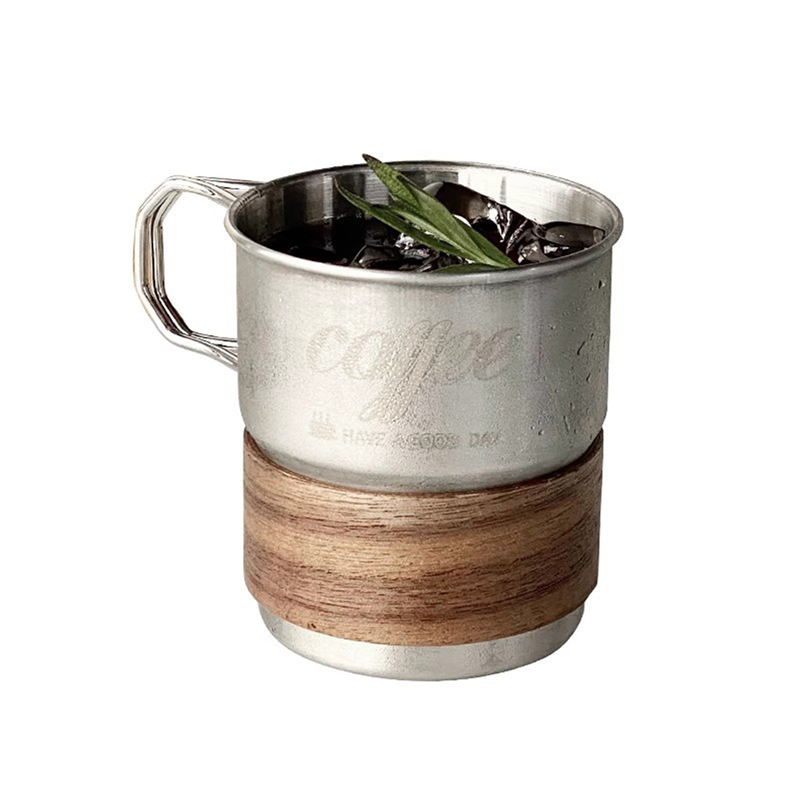 This cup is a good item for gift! Made of single wall 304 stainless steel. And equipped with a wooden sleeve and foldable handle. Can customize your logo on it.