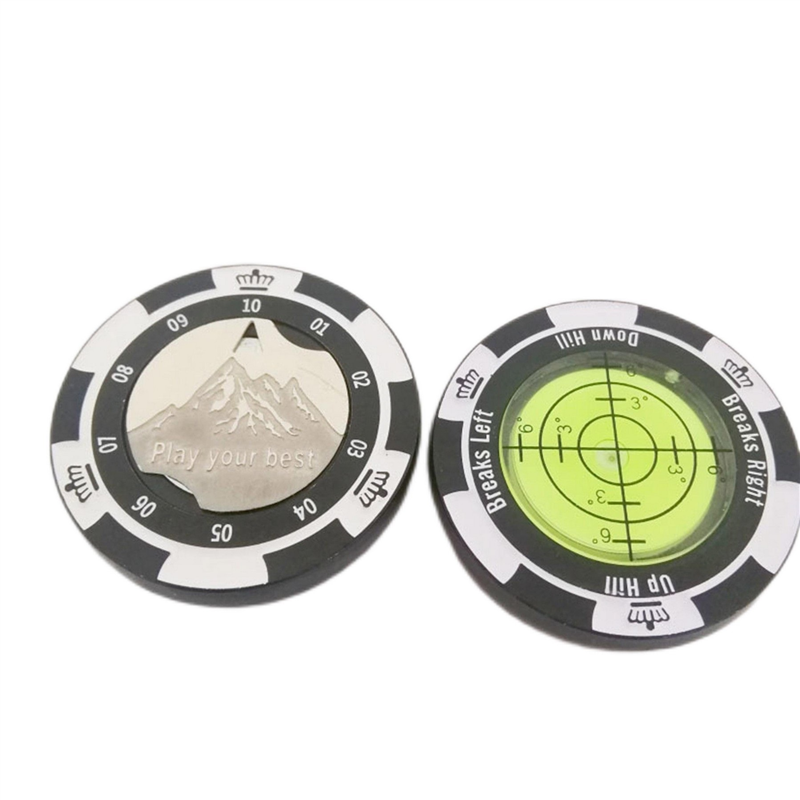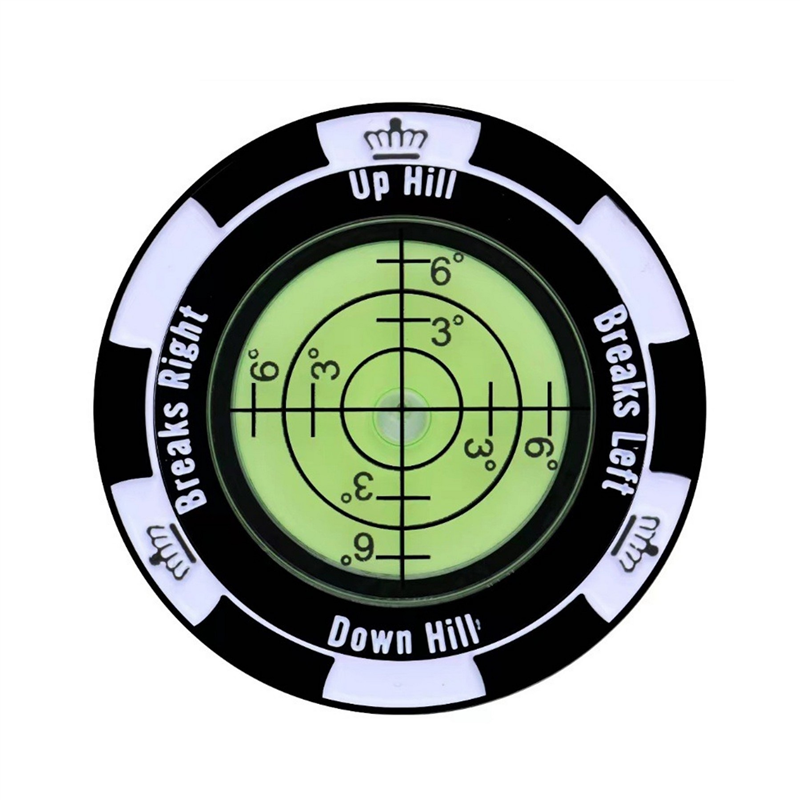 This golf putt green reader is made of magnetic zinc alloy shell. Its high precision bubble level helps players adjust for the slope of the green, giving them a better understanding of the contours and ultimately leading to more successful putts. 1.57" Diameter
