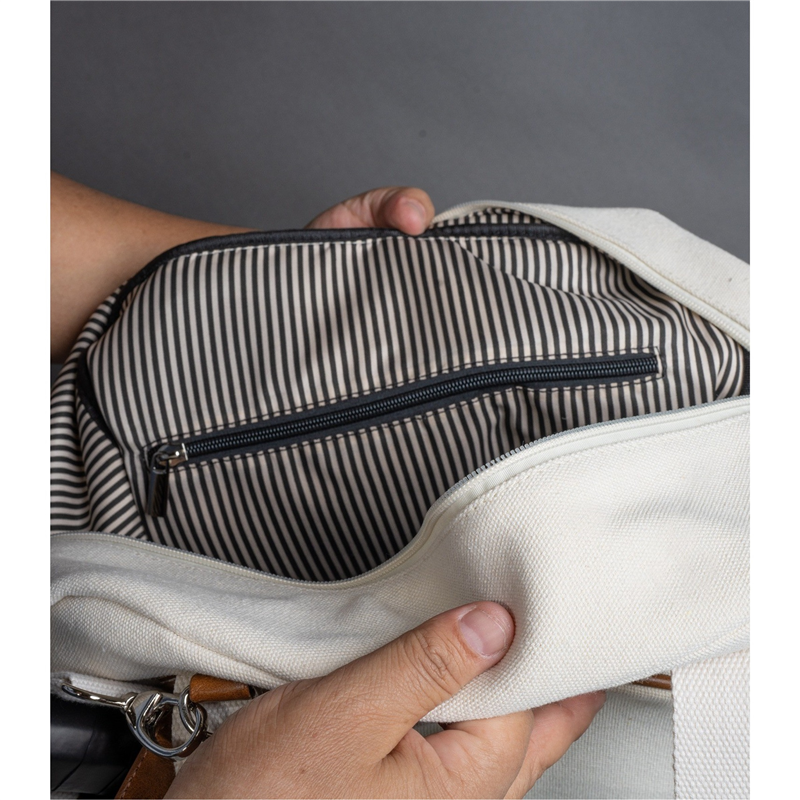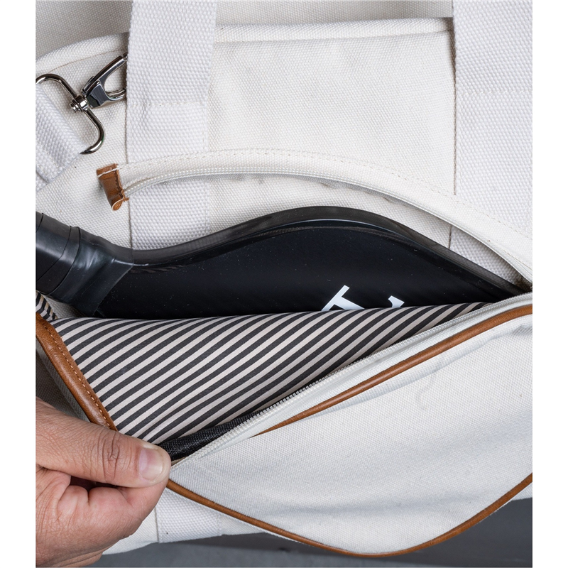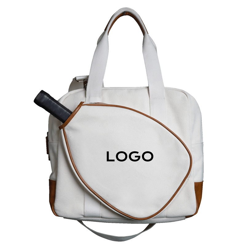 Crafted from durable 16 oz canvas with a stylish PU Leatherette trim, this bag seamlessly blends fashion and function. Inside, you'll find a well-appointed interior with pockets to keep your essentials organized, ensuring you're always ready for action. The front pocket snugly cradles your paddle. Custom logo is available.
