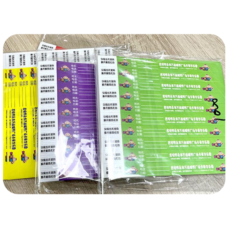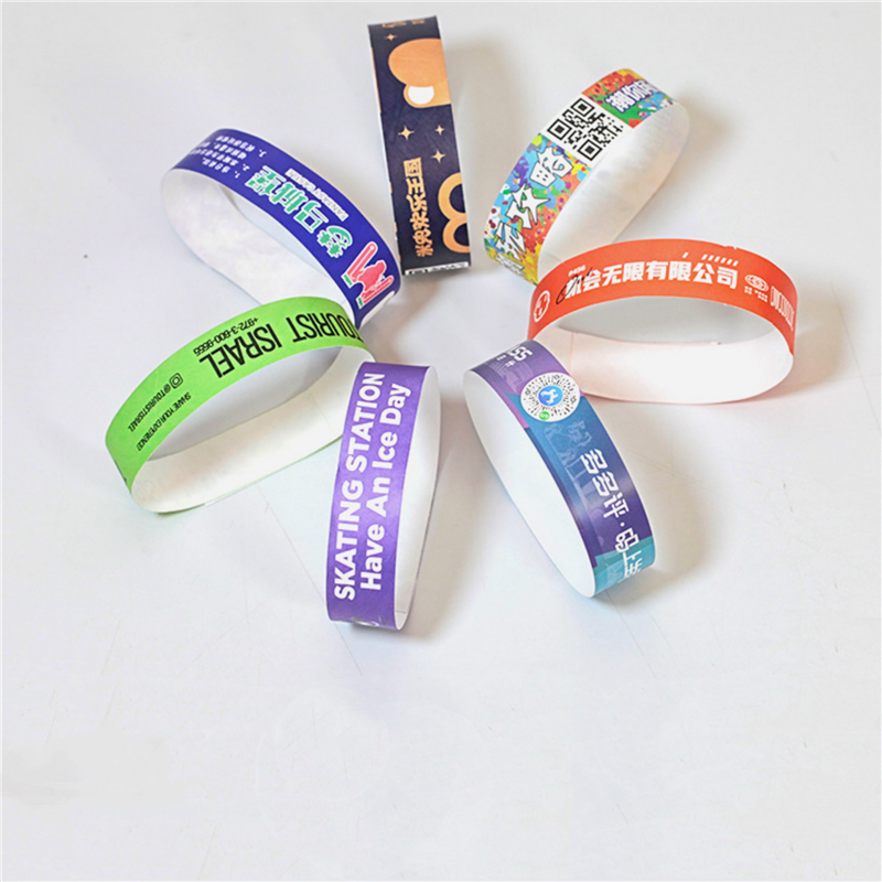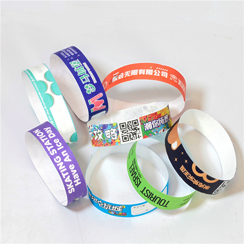The material of this wristband is tyvek. Very suitable for crowd control during festivals, concerts, markets, trade shows, tour groups, amusement parks, breweries, campsites, and casinos. These paper wristbands can write and are waterproof. Can be customized according to your requirements.