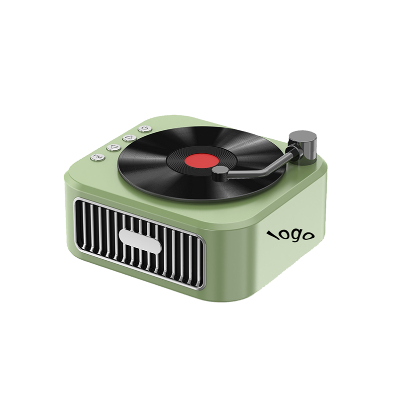 This adorable wireless speaker is shaped like a mini record player and can connect to any cell phone or any other wireless audio device. Custom logo is available.