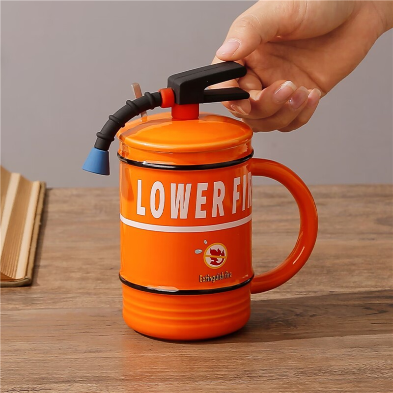 This ceramic mug features the shape of a fire extinguisher. The ceramic material with food grade silicone tube is cute and innovative, new and unique. You can also customize your own logo on the body of the mug to show the personalization.