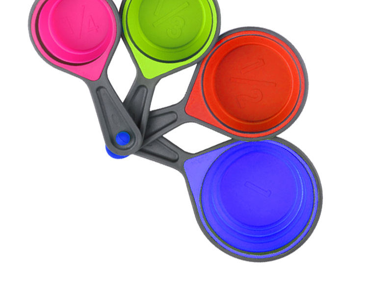 Made of food-grade silicone, this 4-in-1 measuring cup has a pop-out design and is collapsible, making it suitable for measuring powders, liquids and other objects in the kitchen. The capacity is 8.5, 4.2, 2.7 and 2 ounces respectively. Accurate measurement, easy to clean and portable. You can also customize your own logo on the bottom of each measuring cup.