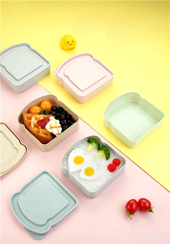 This bento box is designed with bread shape, novel and fashionable, portable and durable, U-shape opening corner, easier to open the lid. Microwaveable. Made of wheat straw, healthy and environmental protection. You can customize your own logo on the lid of the box.