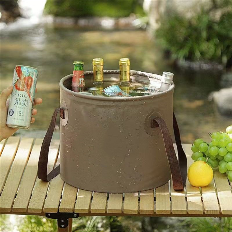 This bucket is waterproof. It's a great item to use for outdoor activities like camping, fishing or going picnic. Suitable for washing vegetables and fruits or putting your beverages in it. Can customize your logo on it.