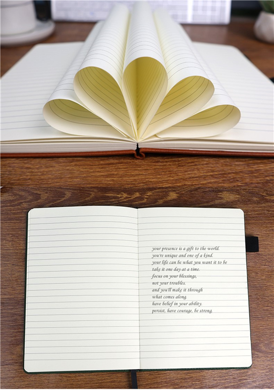 Covers are made of recycled coffee grounds. It has 50 pages and white offset sheets. You can also customize your own logo on the cover to make it more stylish and personalised.