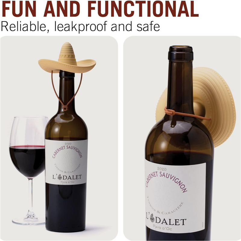 The material of this red wine stopper is silicone. The unique hat shape achieves excellent sealing and enhances your wine experience. Add your company logo or slogan on the hang tag to create a personalized style. This stylish bottle stopper is an ideal choice for wine enthusiasts, bars, and high-end gatherings. It not only preserves the taste of your favorite bottle, but also adds a touch of elegance to any occasion. Can customize your logo and pattern
