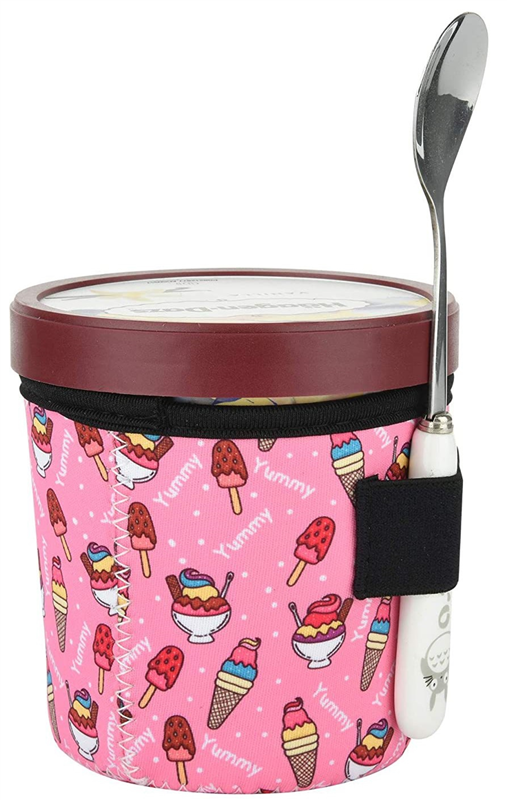 This cup holder is tailored for ice cream and cupcakes. Comes with straps on the side to hold spoons. A perfect tool for enjoying ice cream and cupcakes. You can customize your own logo.