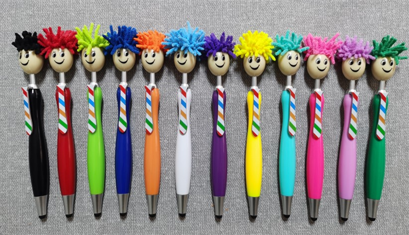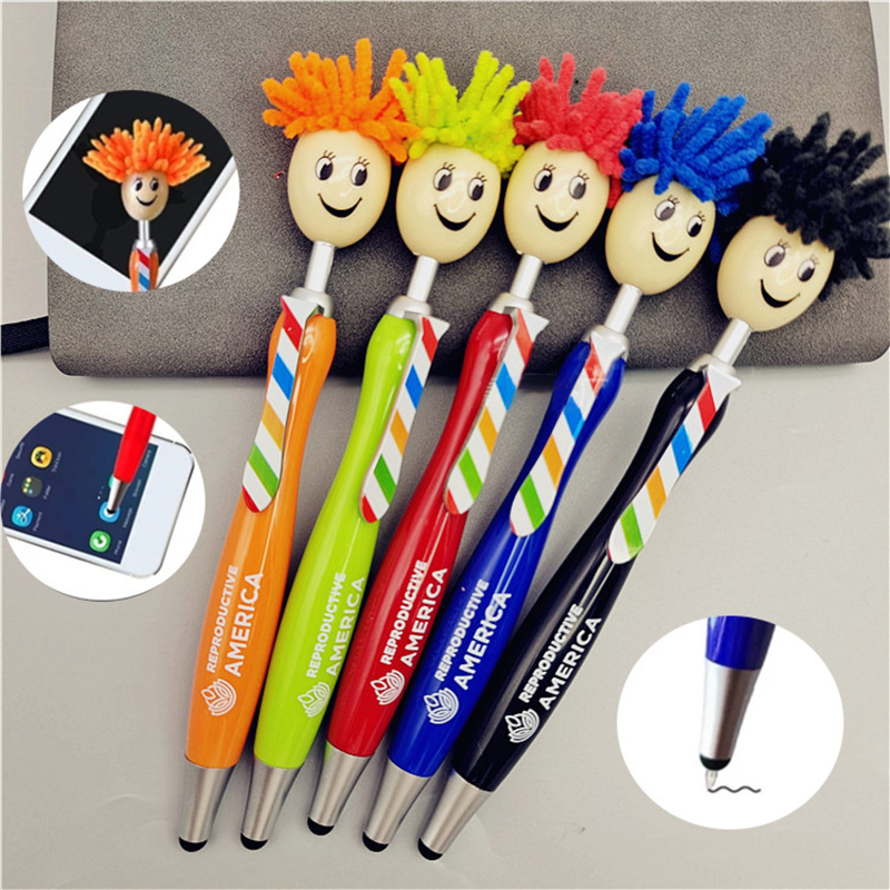 This pen is made of ABS and is creatively designed with a wacky hairstyle, matching tie, and smiley face emoji, making it highly distinctive. This pen not only writes smoothly, but can also be used as a stylus. You can customize your own logo on it.