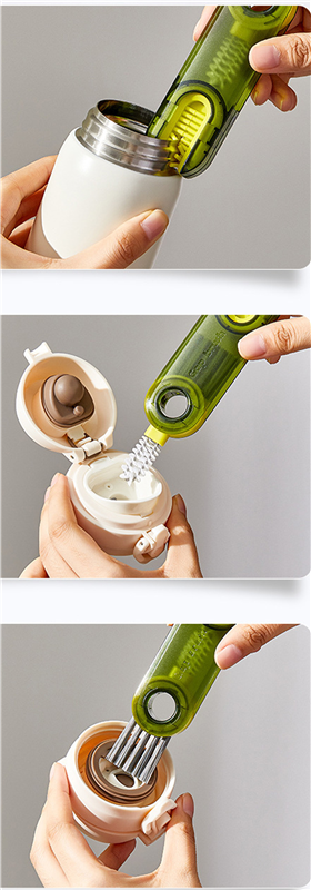 This bottle brush has a 3-in-1 design, innovative U-shaped silicone brush head, suitable for a variety of scenarios. ABS handle, comfortable grip, hard bristles, stain removal power, can be hung for storage. You can customize your own logo.