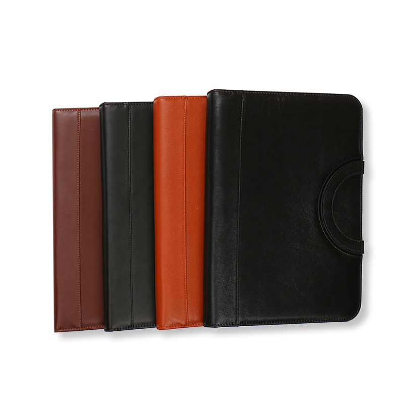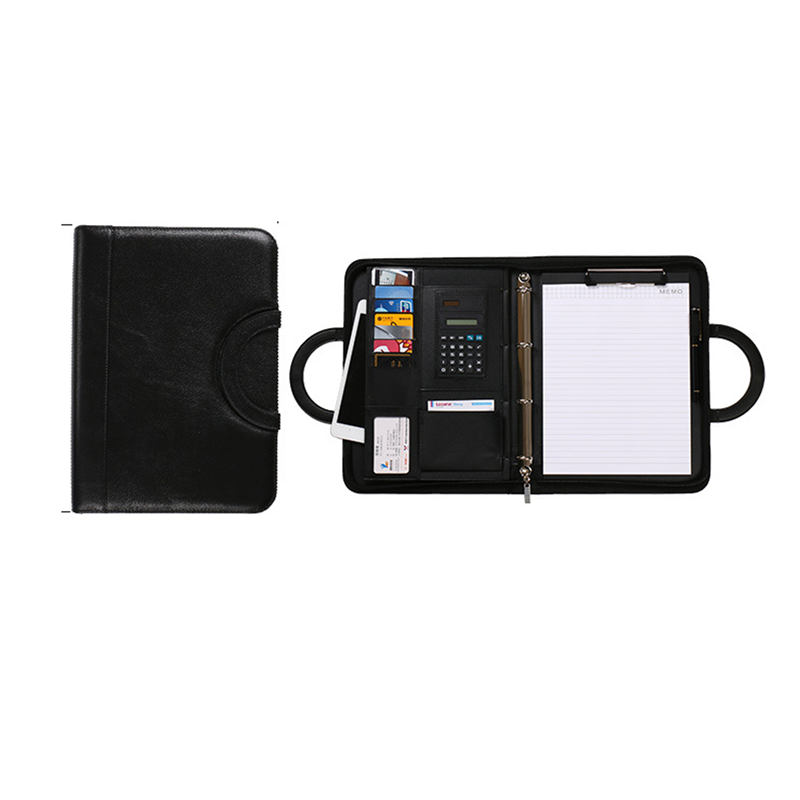 Made of PU leather, this portfolio is packed with functions. It can hold pads, cards, calculators, and comes with a clipboard inside. It is an essential helper for your office. You can customize your own logo on the cover.