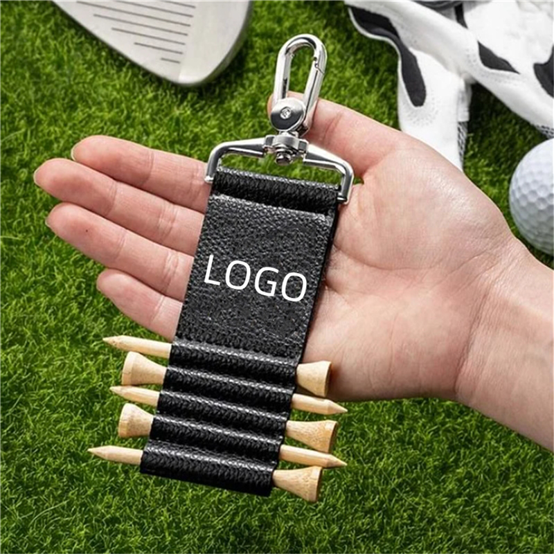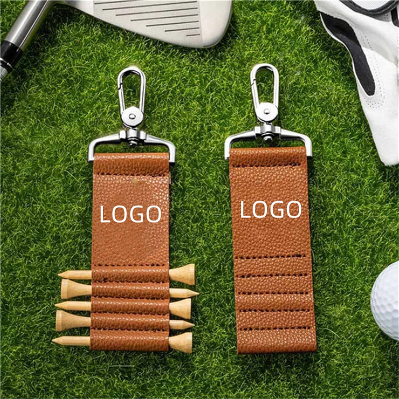 This holder is made of PU leather. With the clip, you can attach this holder to your belt, your golf bag, or wherever's handy. It can fit for 5 tees(not included). Can customize your logo on it. Contact us if you need tees.