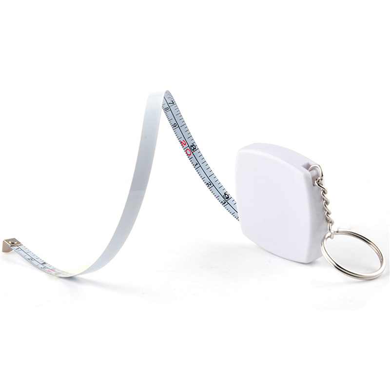 This mini tape measure features ABS shell and steel tape. 2m/6ft long retractable tape. It's easy to carry with a keychain. Full color logo customization is available.