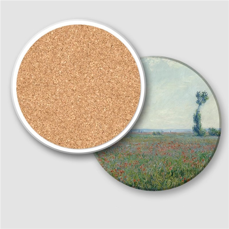 3.5" Round Ceramic Coaster with Cork Base