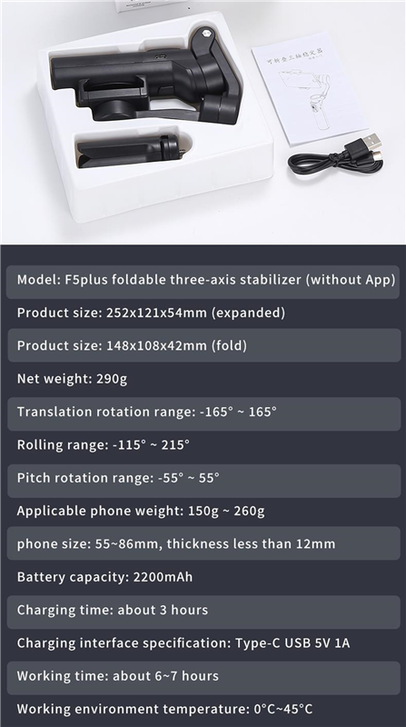 3-Axis stabilization one second on. 330° intelligent tracking mobile phone blockbuster. Four modes to get started: inception, lock, follow, first view mode. Please refer to the pics to know more about its parameters. No companion app. Custom logo is available.