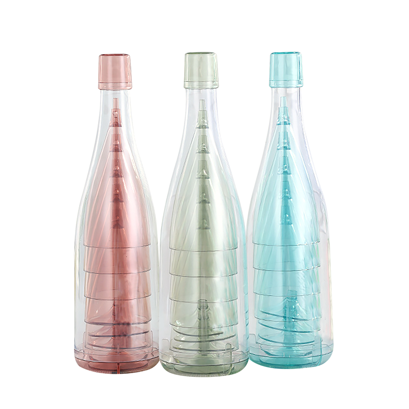A set of 5 plastic champagne glasses combined into a bottle, does not take up too much space in your home. Reusable plastic champagne glasses are made of food-grade and high-transparent plastic which is crystal clear and has a texture like glass, can be used to hold champagne, wine, cocktails, sodas, juices and water. Suitable for daily, party, travel, camping, picnicotdoor activities.
