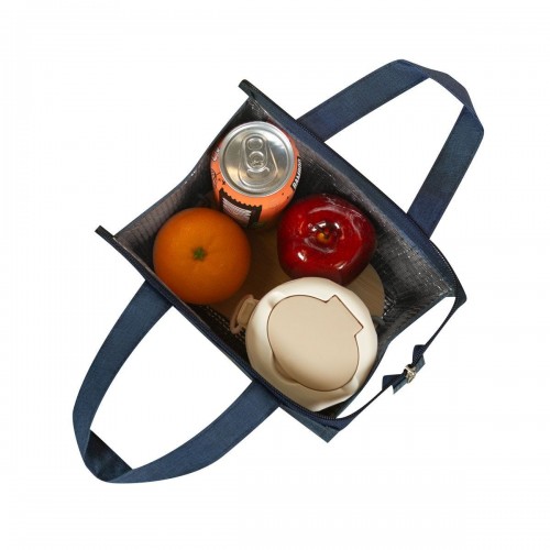 Lunch bag with metalized interior, front pocket for storing utensils or small accessories. The main bag comes with a zipper and handle for easy carrying.