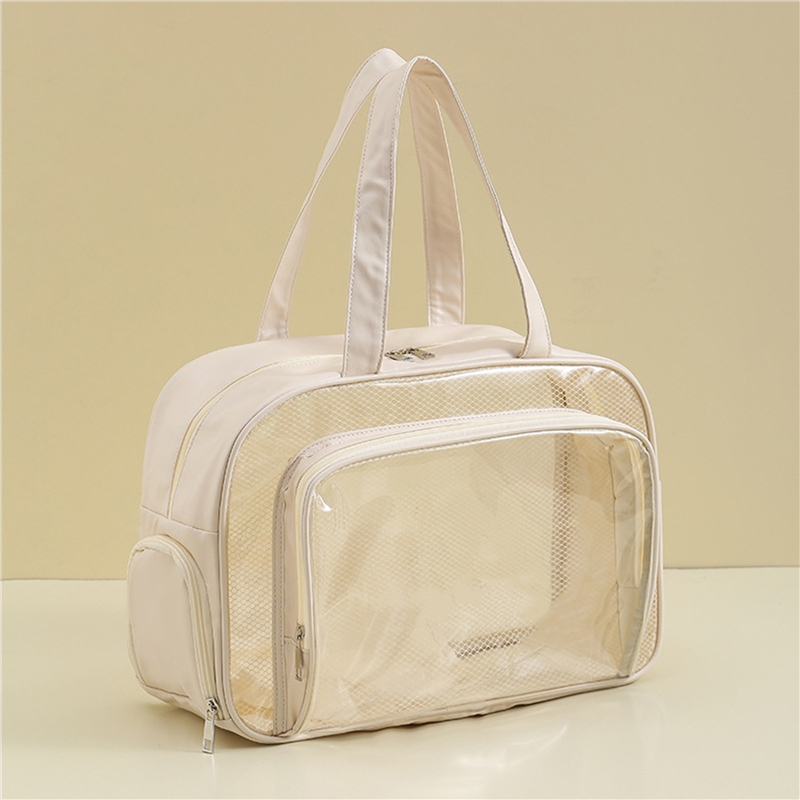 This zipper tote has three compartments. Large enough to put all your belongs in it when go outside. Suitable for beach use. Can put your shoes in side compartment. Welcome for logo customization.