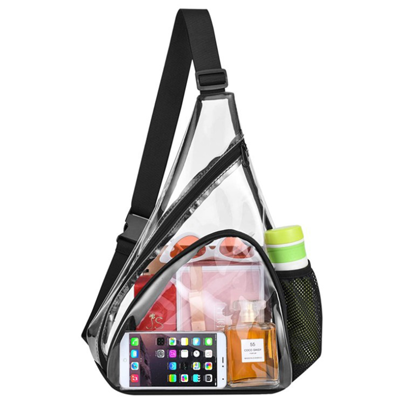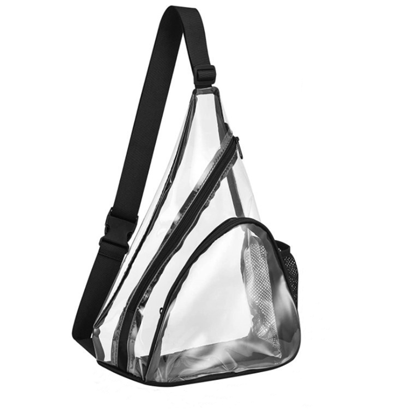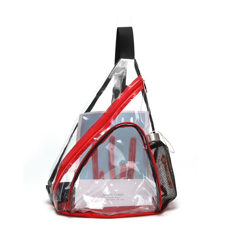 This clear backpack is made of watreproof PVC material, features a zipper main compartment and a zipper front pocket, roomy enough to store small tablets, wallet, small water bottle, keys, etc. Can customize your logo on it.