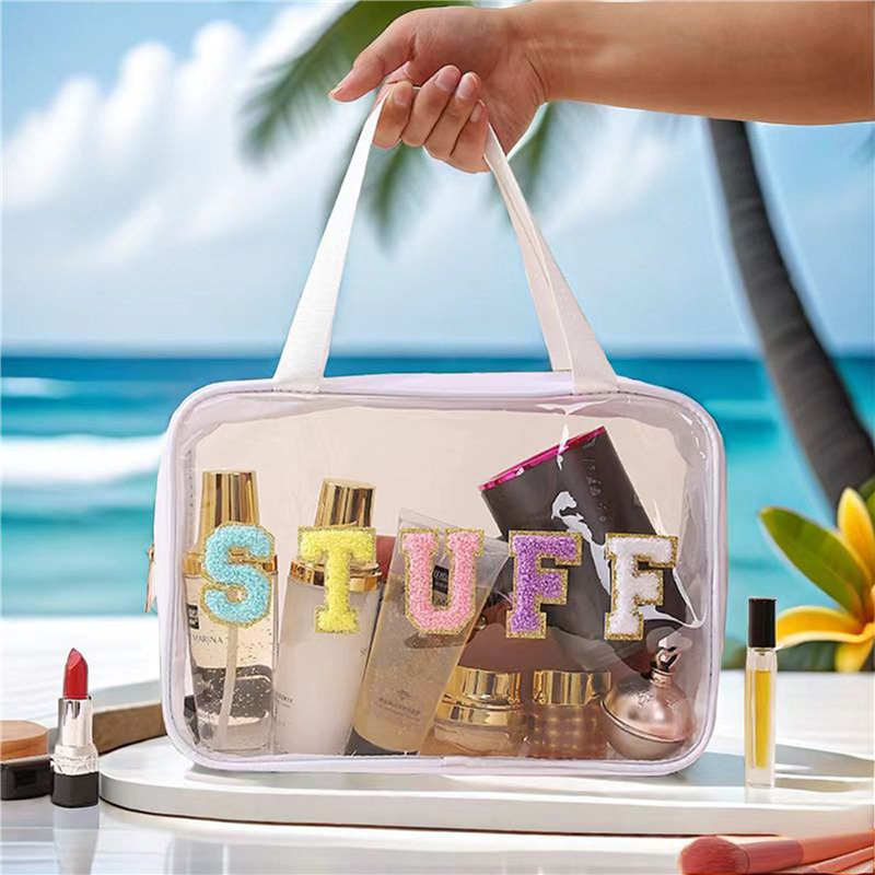 This bag is made of high quality PVC and durable polyester, with custom letter patches sewed on. It is big enough to hold many of your belongings. And can be used for various occasions such as beach, pool, water park, picnic, park, gym, boat, stadium, sports game, vacation, shopping, music festival, and water activities. Can customize the letter patches and your logo on it.