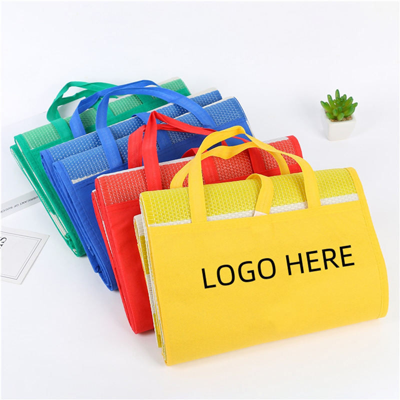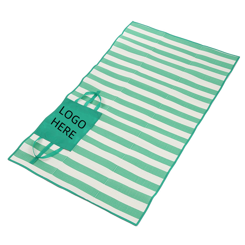 This mat is made of durable PP material, protecting you from sand. It features an attached carry-handle for easy storage. It can be folded up easily to take along anywhere. Can customize your logo on it.