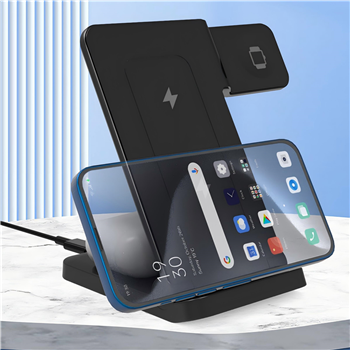 Our wireless charging stand is designed for charging threedevices with just one cable.