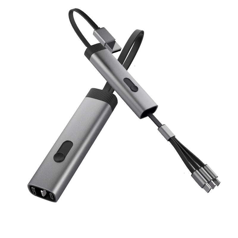 Travel Charging Cable – the ultimate solution for on-the-go charging. Crafted with premium aluminum, it's both durable and stylish. Its compact size makes it perfect for traveling, easily fitting into any bag or pocket.