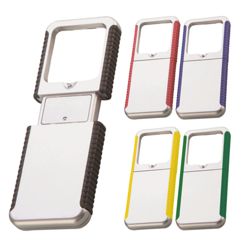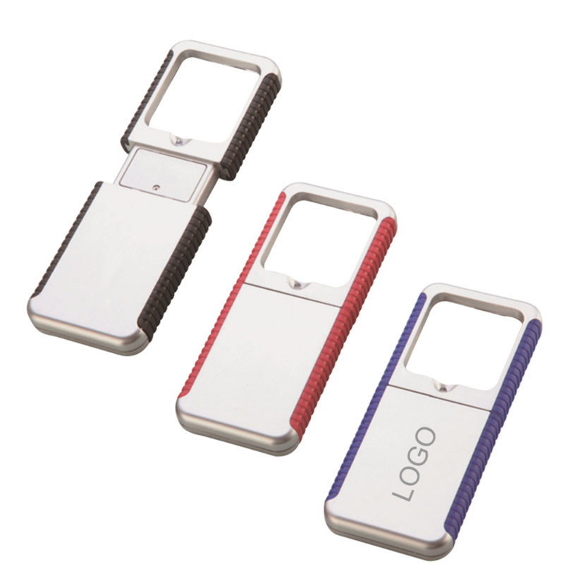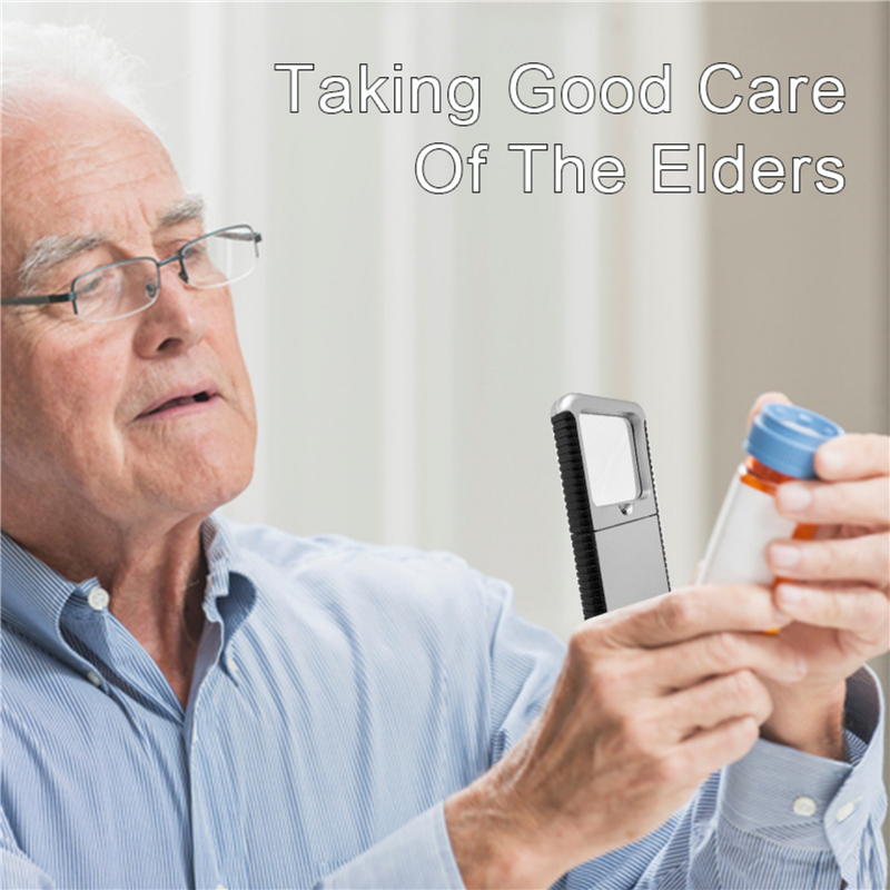 The material of this product is plastic. It is a portable magnifying glass with a light. The size is very small, making it easy to carry around. Very helpful for the elderly. Can customize your logo and pattern.