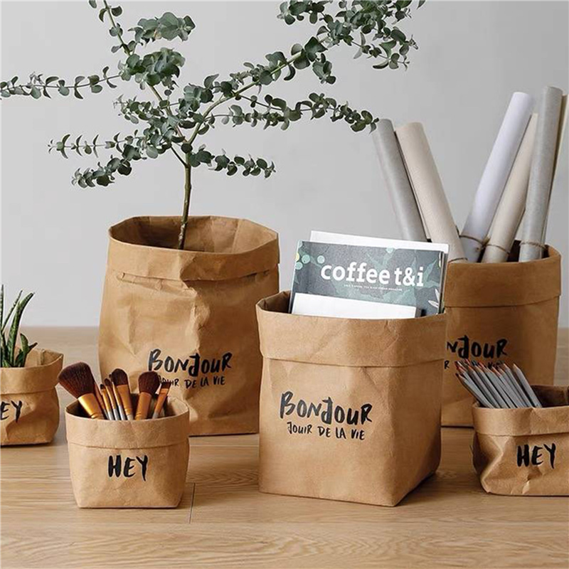 This kraft paper bag is washable kraft paper, which can be washed with water and is easy to clean. The thickness has been upgraded, so this exquisite shopping bag is reusable and durable. The material of this kraft paper is natural fiber pulp, does not contain any harmful substances, and can be recycled, degraded and reused. It can be used as a grocery organizer, balcony flower pot, gift bag, or simply as a household item. Four sizes for option. Custom logo is available.