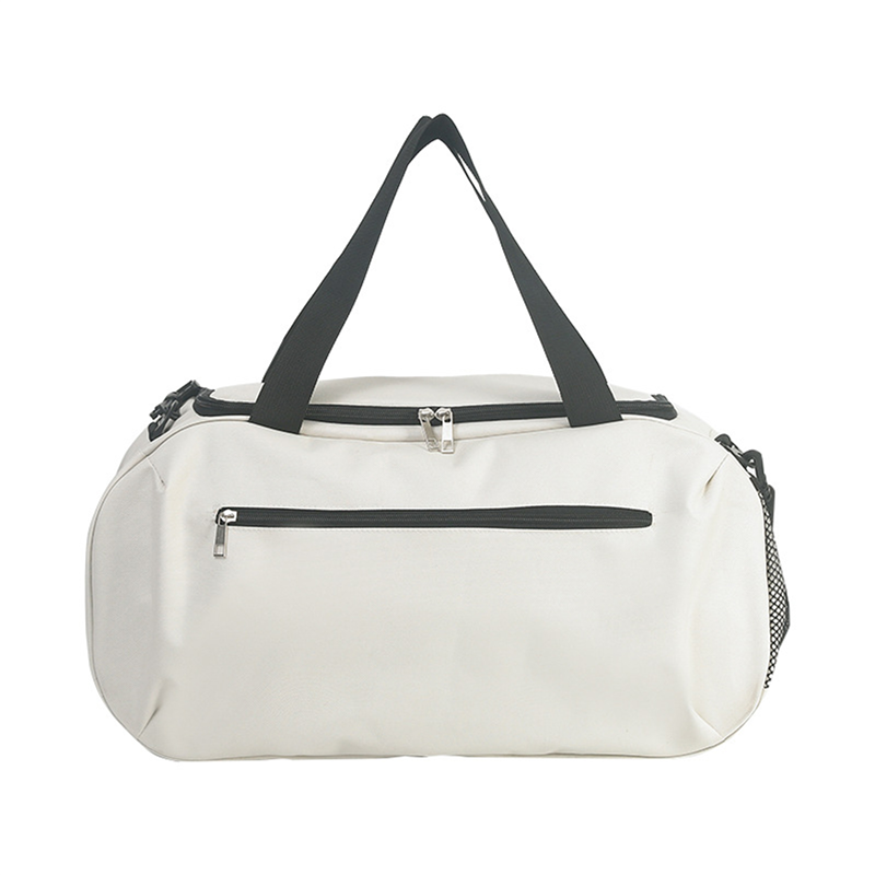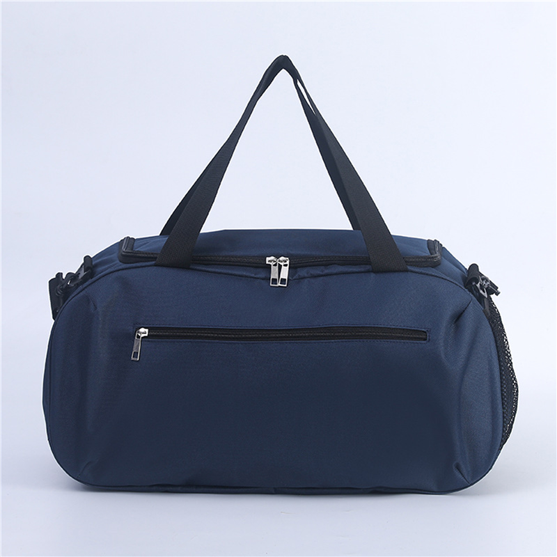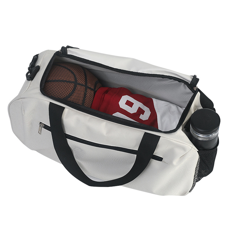 This bag is made pf 600D oxford fabric. The main compartment is large enough to put a basketball, clothes, and toiletries in it. With a mesh pocket on side, you can carry your water bottle easily. Equipped with a zipper pocket on front, you can put your wallet and phone in it. Can customize your logo on it.