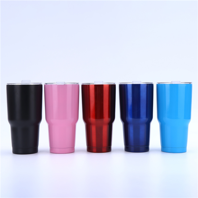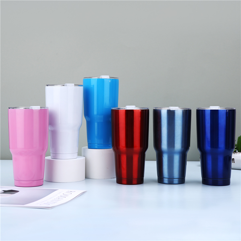 This 30oz. stainless steel travel mug features double-wall vacuum insulation with a clear lid. The mug has a narrower bottom to fit most standard cup holders. This vacuum bottle is designed to keep your beverages hot for 8 hours and cold for 16 hours. Can customize your logo on it.
