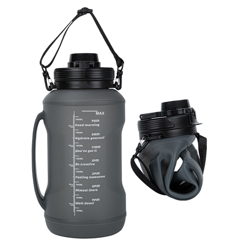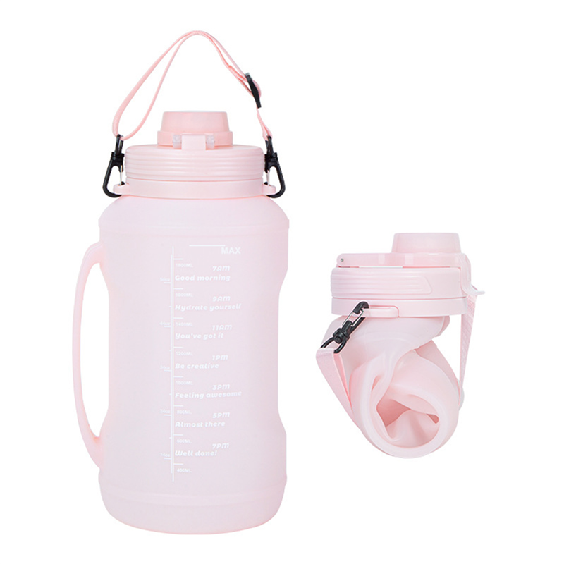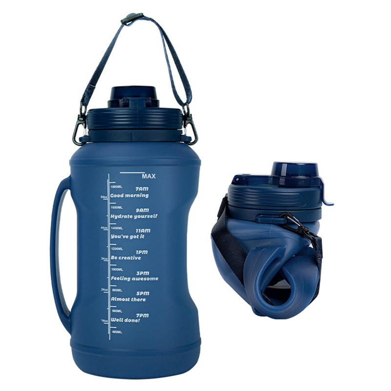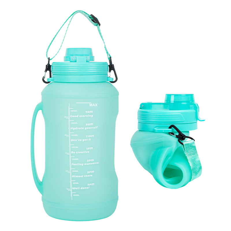 This large capacity water bottle is made of food-grade, FDA-approved silicone, which is non-toxic and BPA-free. It features a lid, straw and handle. Easy to use and carry. Can customize your logo on the other side or on the top lid.