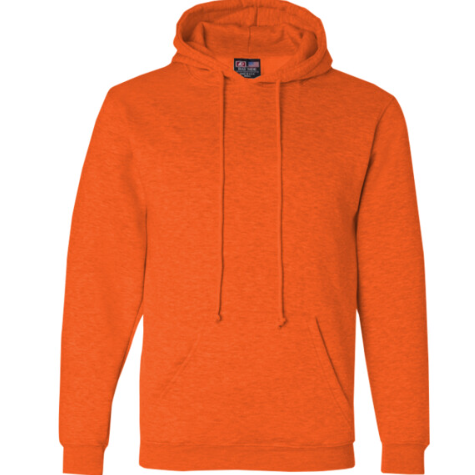 The pre-shrunk hoodie boasts a warm double-lined hood with a matching drawstring, an extended size range, a front pouch pocket, and Lycra® ribbing at the cuffs and bottom band.
