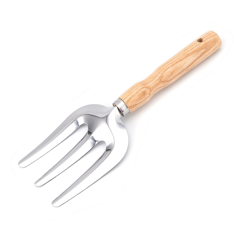 These garden tools are perfect for digging, weeding, loosening soil, aerating, transplanting and more. The material is high quality steel, sturdy and durable, not easy to rust. Handle material is ash wood, comfortable grip. You can also customize your logo on it.