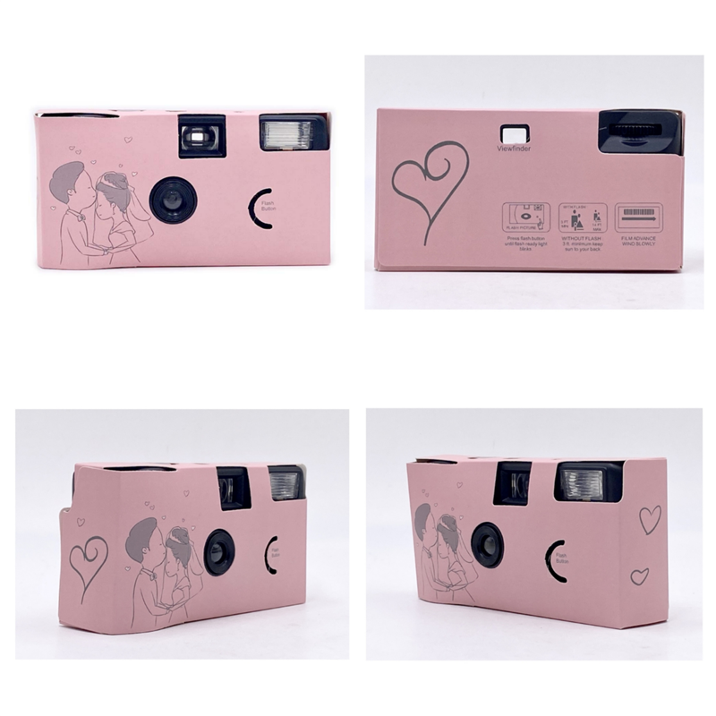 This camera can take 27 photos. High quality and high-performance disposable cameras. We also have options for 12 photos and 17 photos, and we will provide prices if you need them. Paper cards can be customized completely according to your ideas.