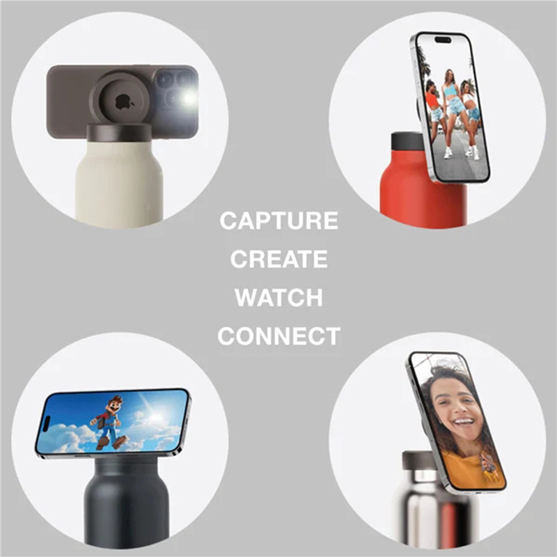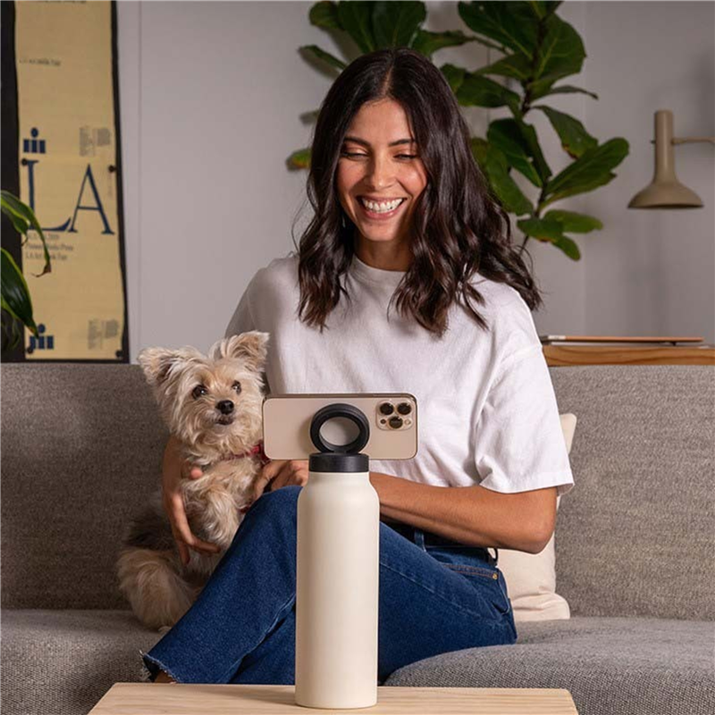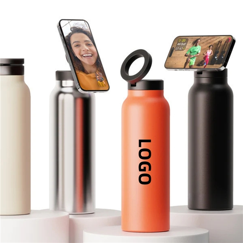 The insulated water bottle can hold your phone magnetically. It is compatible with all devices, works empty or full, and has a full 90-degree range. Capture your best content, watch videos, follow workouts, make video calls, and stay hydrated wherever and whenever. The price includes one color one location imprint.