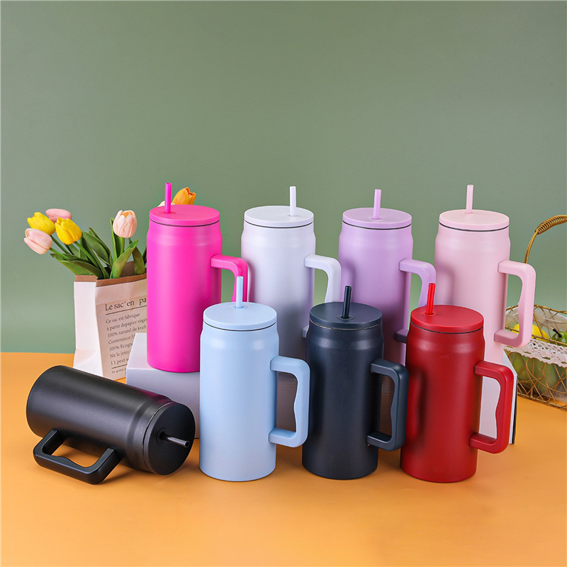 This 50oz water bottle is made of double wall stainless steel. Can keep water cold or warm 6-10 hours. Equipped with a handle and a straw, it's easy to carry and use. Can customize your logo on it.