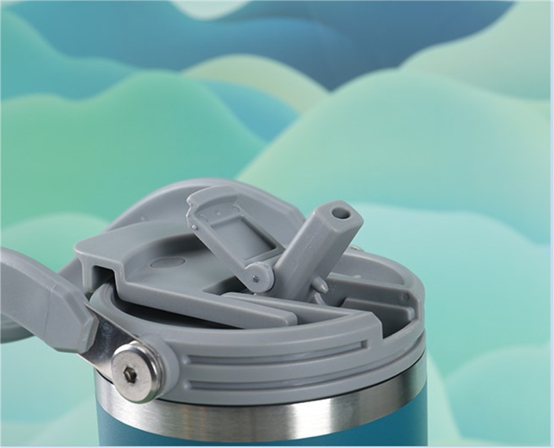 Insulated bottle with stainless steel outer and inner walls. Copper-lined. Double-wall vacuum insulated. Keeps your drinks hot or cold for hours. Twist on lid w/ rubber gasket and flip up straw. Convenient flip up carrying handle. BPA-Free. Sweat-resistant. You can also customize your logo on it.