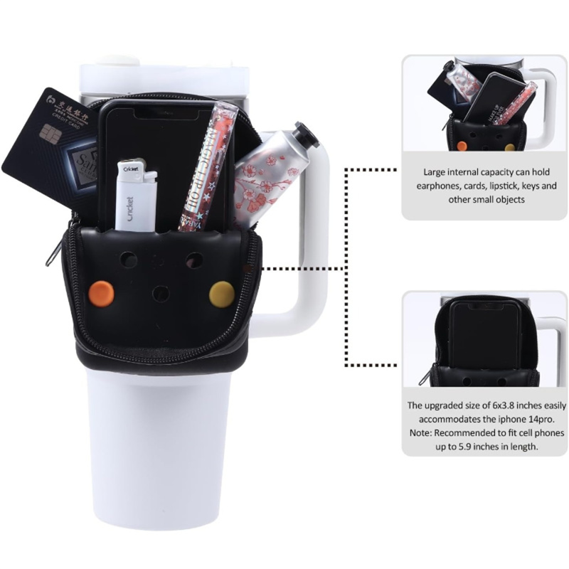 This pouch is made of silicone and is designed for tumblers. The shape is simple and versatile, and you can add small ornaments to show your personal characteristics. You can also customize your logo on it.