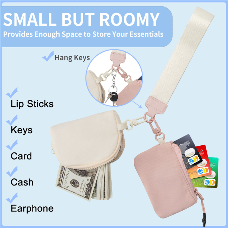 This wristlet purse adopts dual lanyard design, securely store ID, cards, and small essentials. It also has detachable components, allowing for flexibility and easy access to items. You can also customize your logo on it,