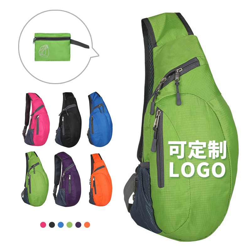 The shoulder bag made of polyester and mesh fabric materials. It enables you to hold a water bottle, umbrella because it is featured with 1 mesh side pocket. 1 main zipper pocket is large enough to hold your phone, purse, keys and more. Great travel foldable backpack for cycling, running, hiking, short climbing, or any other outdoor sports.